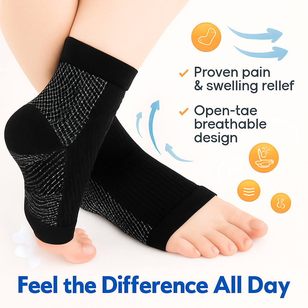 Our Ankle Compression Socks apply gentle, targeted pressure to improve circulation, reduce swelling, and ease pain caused by neuropathy, plantar fasciitis, or fatigue.