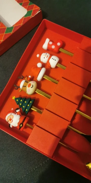 This 6-piece coffee spoon and fork set features adorable Christmas designs on each handle — Santa, Snowman, and Christmas Tree. Each piece has smooth, burr-free edges and a mirror-polished finish, adding a joyful touch to your table. Perfect as Xmas party bag fillers, festive tableware, or thoughtful Christmas kitchen gifts in a vibrant red gift box.