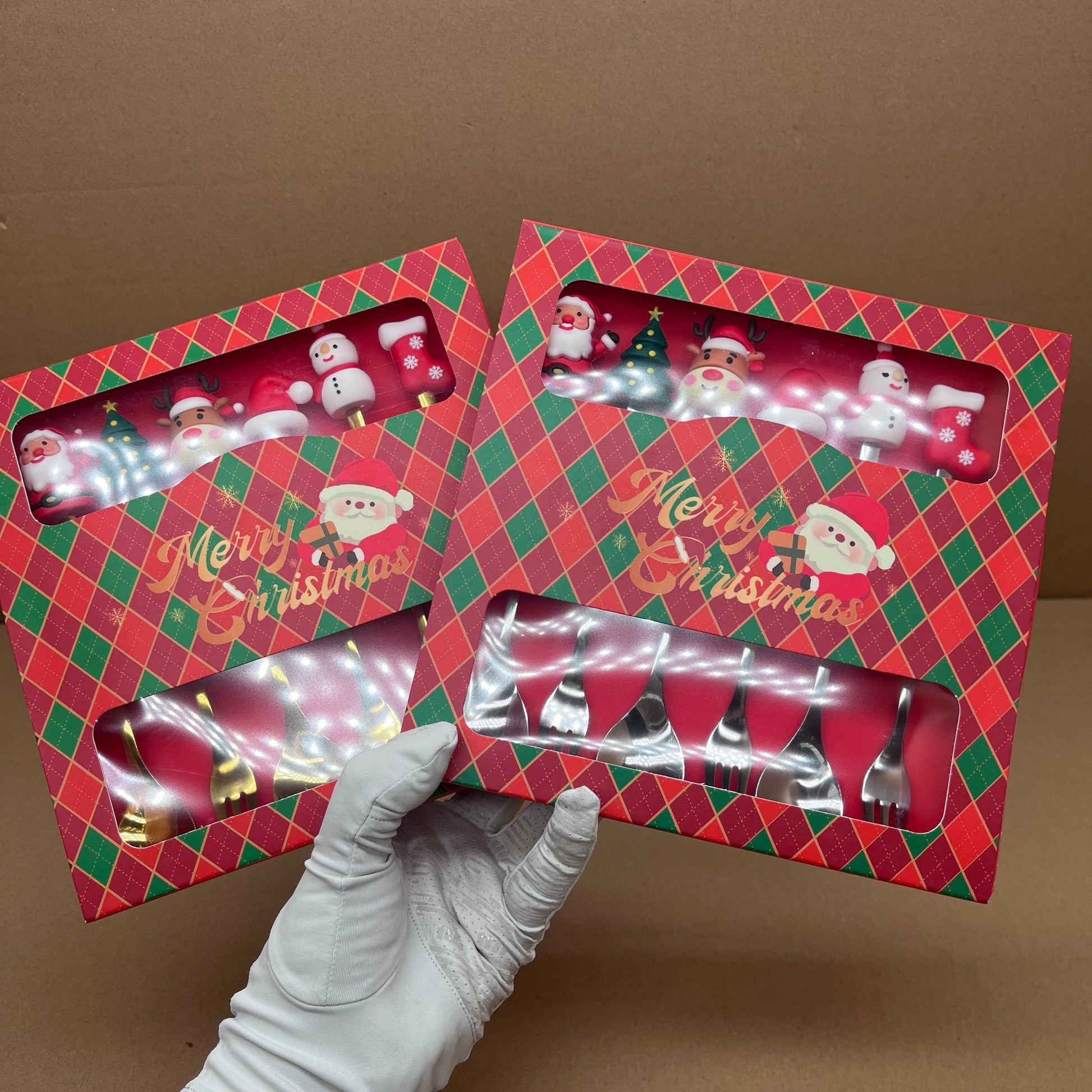 Each piece is crafted from premium stainless steel with PVC decorative handles, offering both durability and festive charm.