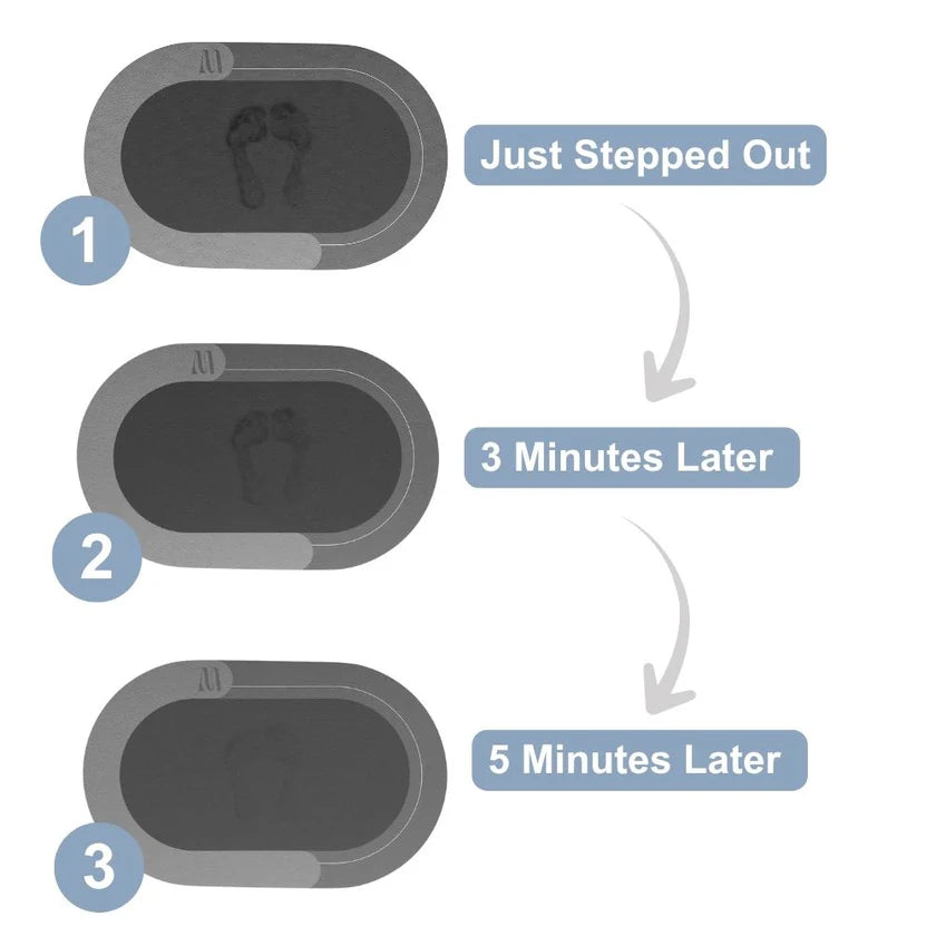 Our Luxury Quick-Dry Mat uses advanced diatomite and quick-evaporation technology to absorb water instantly and dry within minutes — ensuring your floors stay spotless and safe.